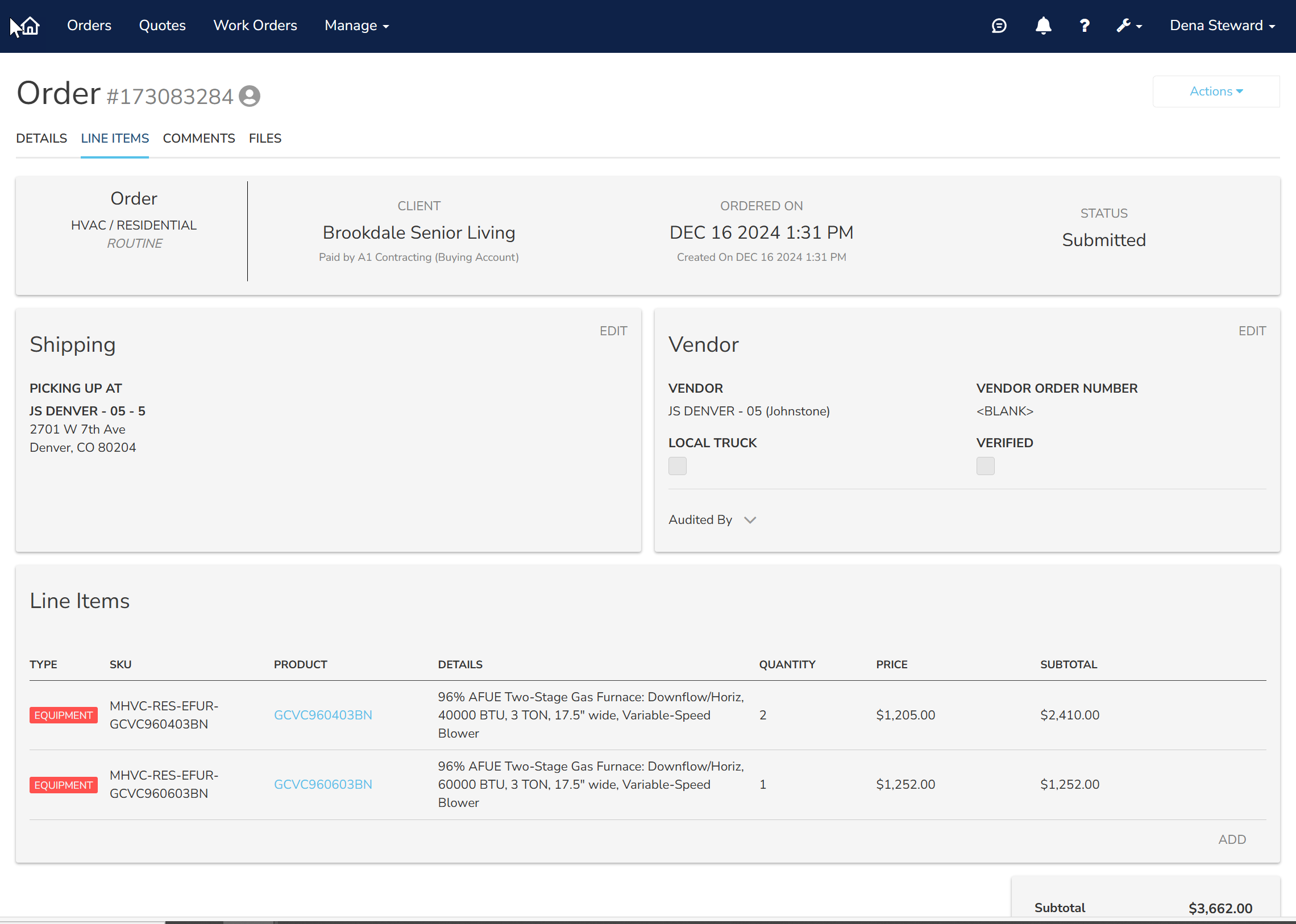 - After you place the order, select the Line Items tab to review it.